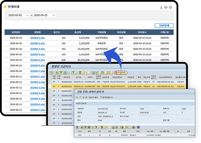 ERP에서 작성한 지급전표 그대로 이체하여