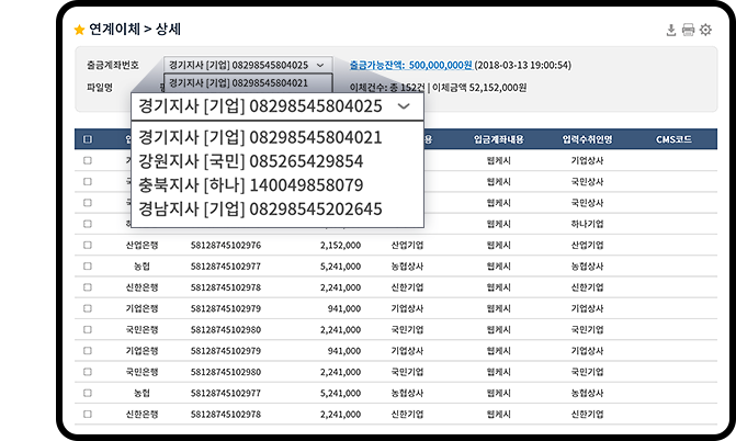만 건 이상의 대량이체건도 One-Click으로