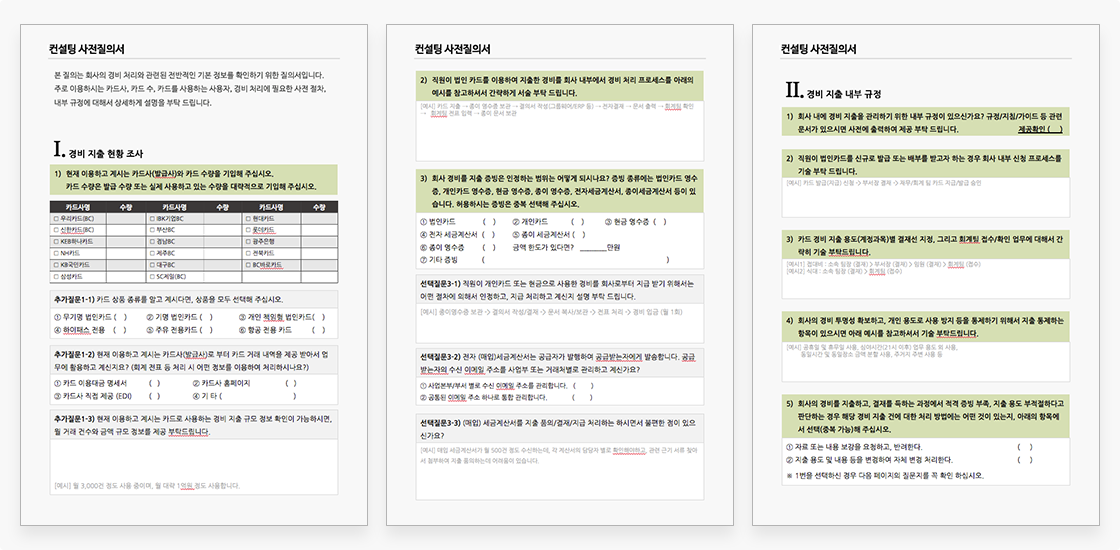 기업의 다양한 경비지출 컨설팅 경험을 바탕으로 고객의 현 경비 지출 업무를 분석하여