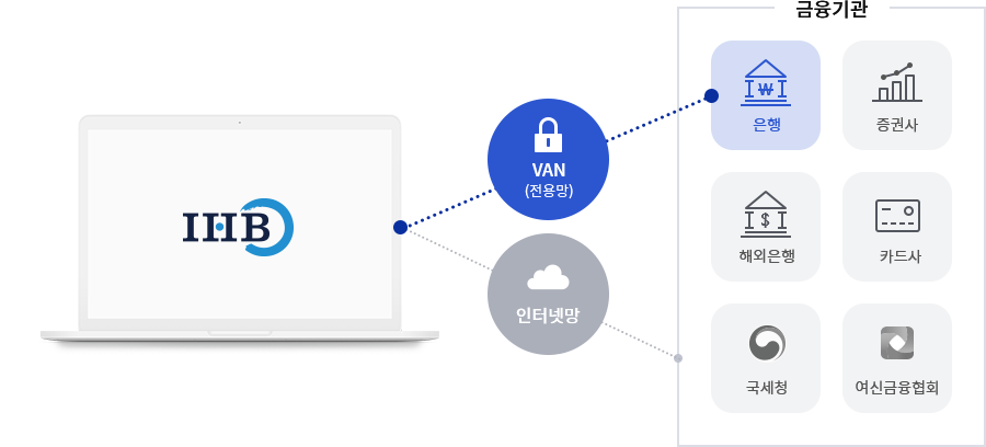국내은행은 물론 증권사, 카드사, 국세청, 해외은행 등 펌뱅킹 연결보다 금융정보 연계 확장성이 뛰어납니다.